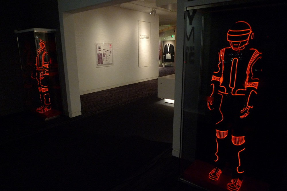 Daft Punk's robot suits, illuminated by Janet Hansen, are featured in this ongoing exhibit at the Grammy Museum in Los Angeles, CA. (As of 2016 they were still on display)