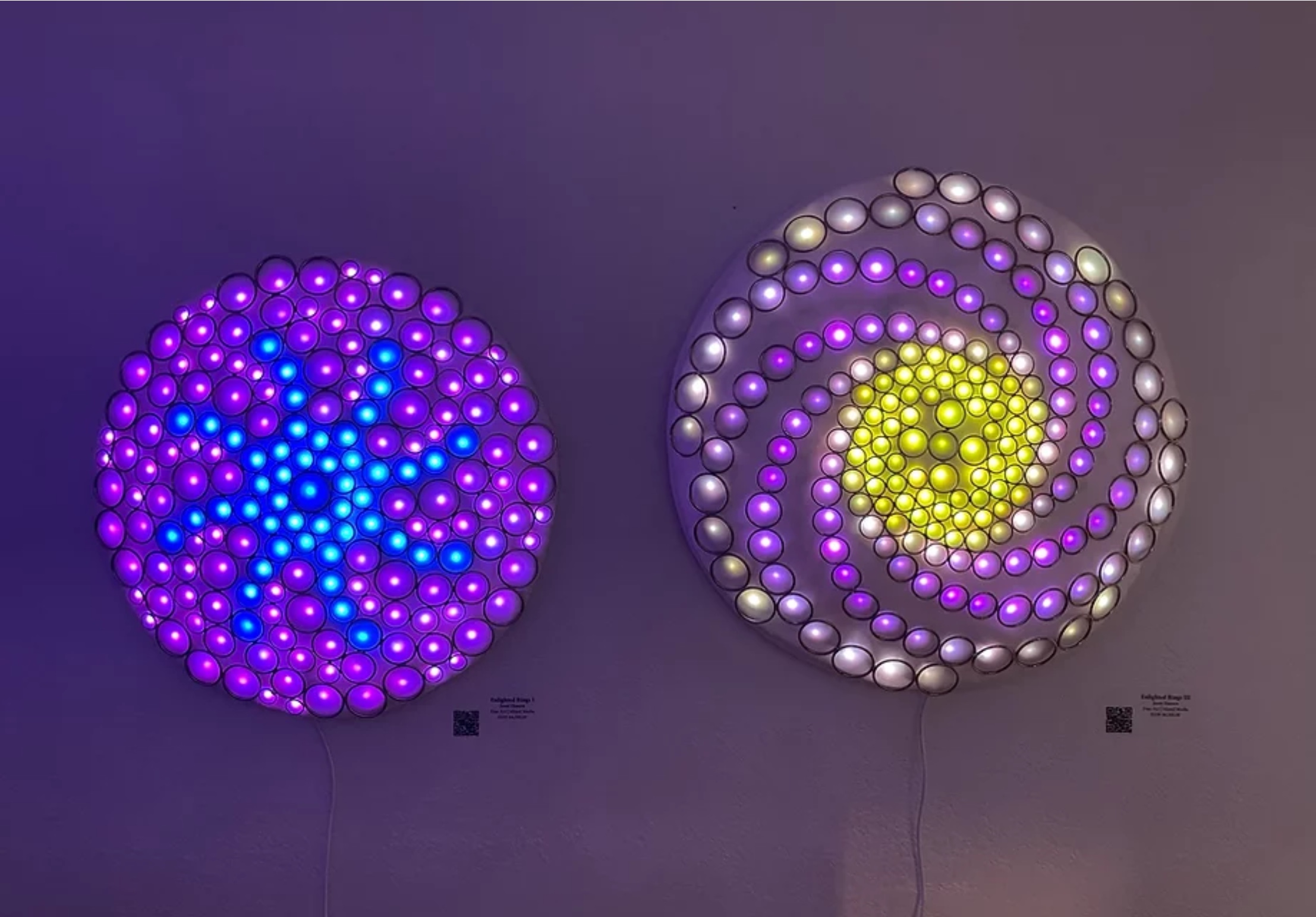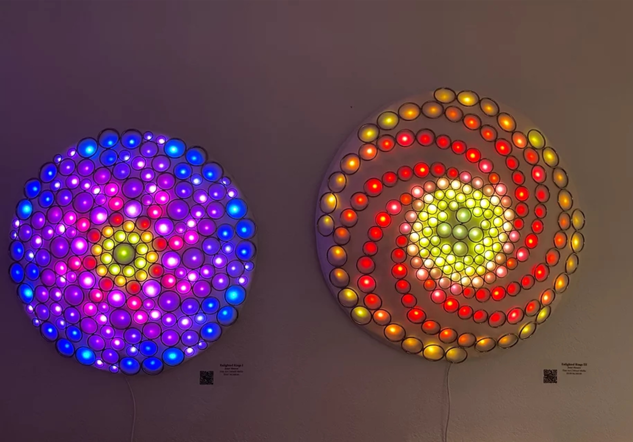 The theme asked artists to share what inspires and motivates us, what gets our creative juices flowing, and what do we want to share with the world. Two of my pieces were selected for the show: Enlighted Rings I and Enlighted Rings III