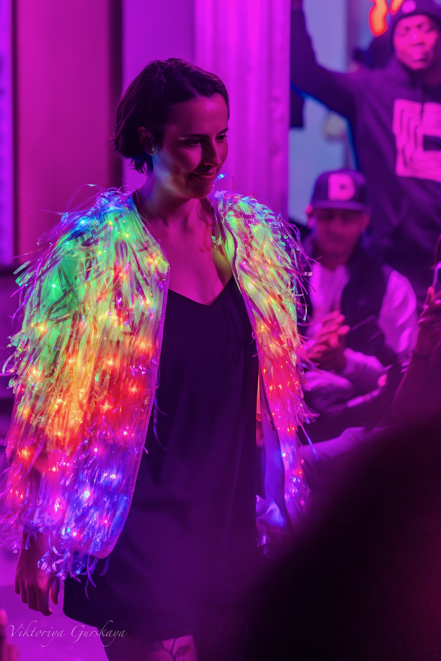 There was an opening night party with a fashion show on Thursday, February 8th. Daytime lectures and evening afterparties will continued through the weekend, with our work on display in the same event space.  I presented a one hour lecture on my LED costume work at 1pm on Saturday, February 10th.